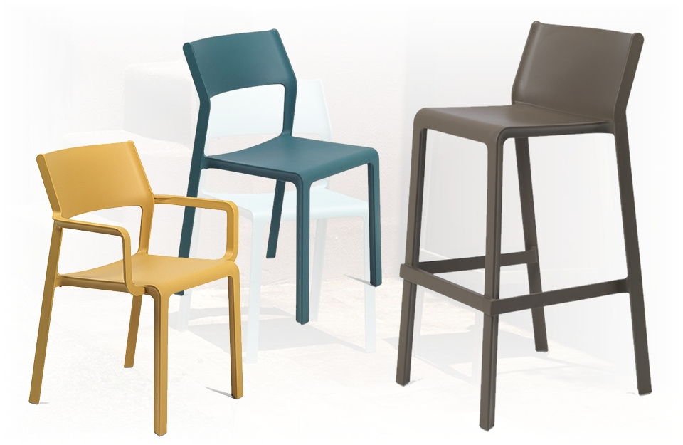 V "rodině" TRILL najdete kvalitní plastovou židli, křesílko i barovou židli. Všechny produkty jsou vyrobeny z kvalitního polypropylenu vyztuženého skelným vláknem. Židle jsou velmi odolné (200 kg nosnost), stohovatelné a vhodné pro domácnost i komerční provoz (do vysoce namáhaných restauračních provozů) i na ven.