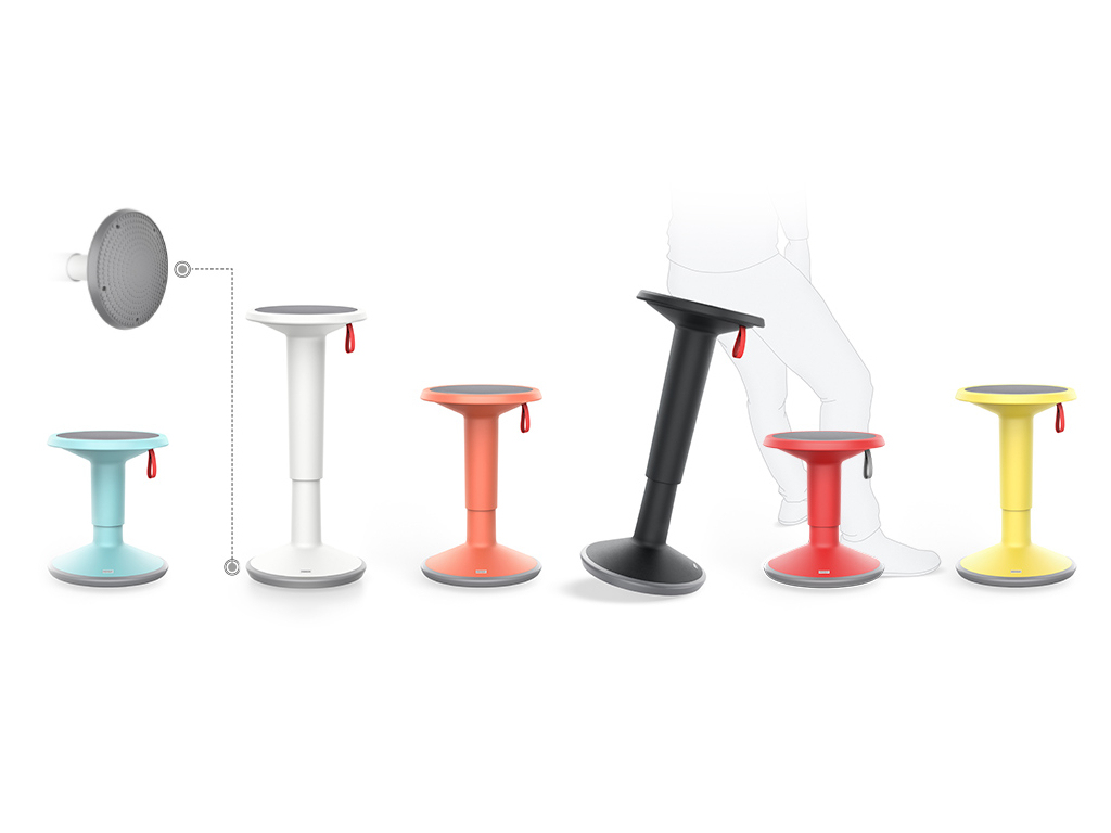 Navíc lze stoličku díky konvexnímu designu základny vždy posouvat všemi směry a podporovat aktivní sezení. UP vybízí uživatele, aby změnil způsob sezení a více se během (pracovního) dne hýbal tak, aby byl někdy na své kancelářské židli, někdy na UP, někdy ve stoje.