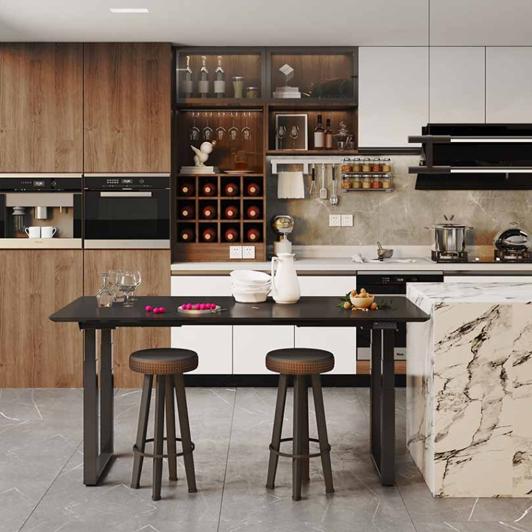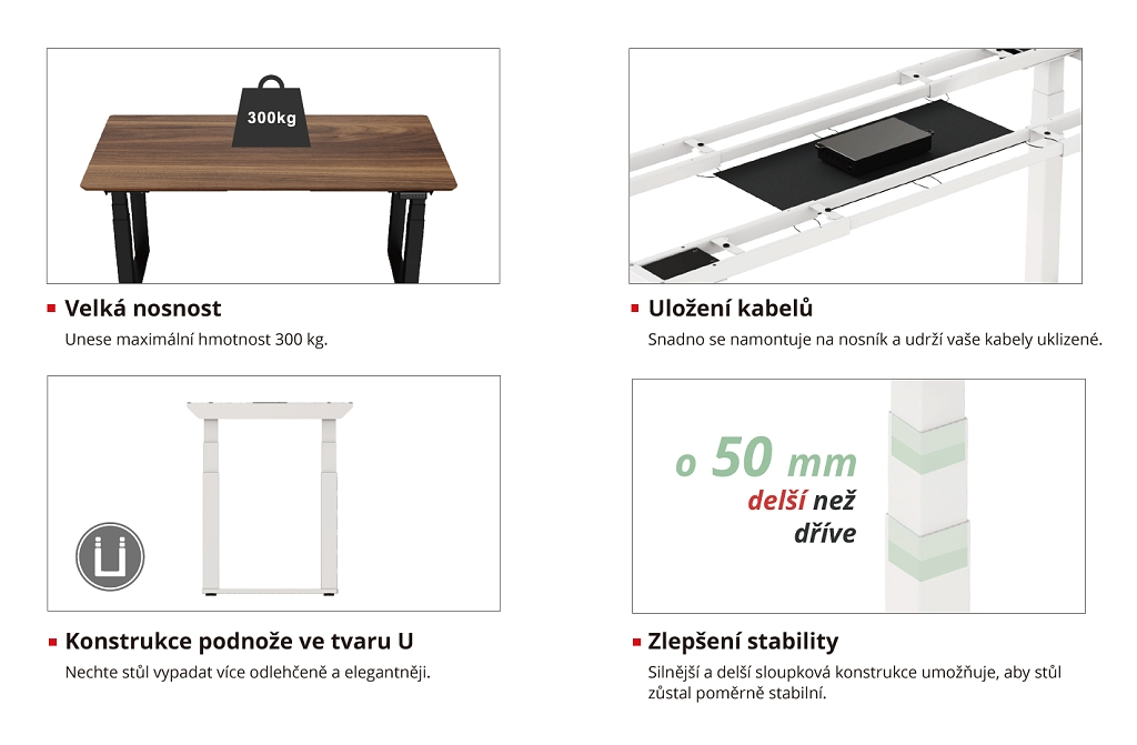 - Díky konstrukci ve tvaru U je vzhled stolu odlehčenější a elegantnější s lepší stabilitou zvedání