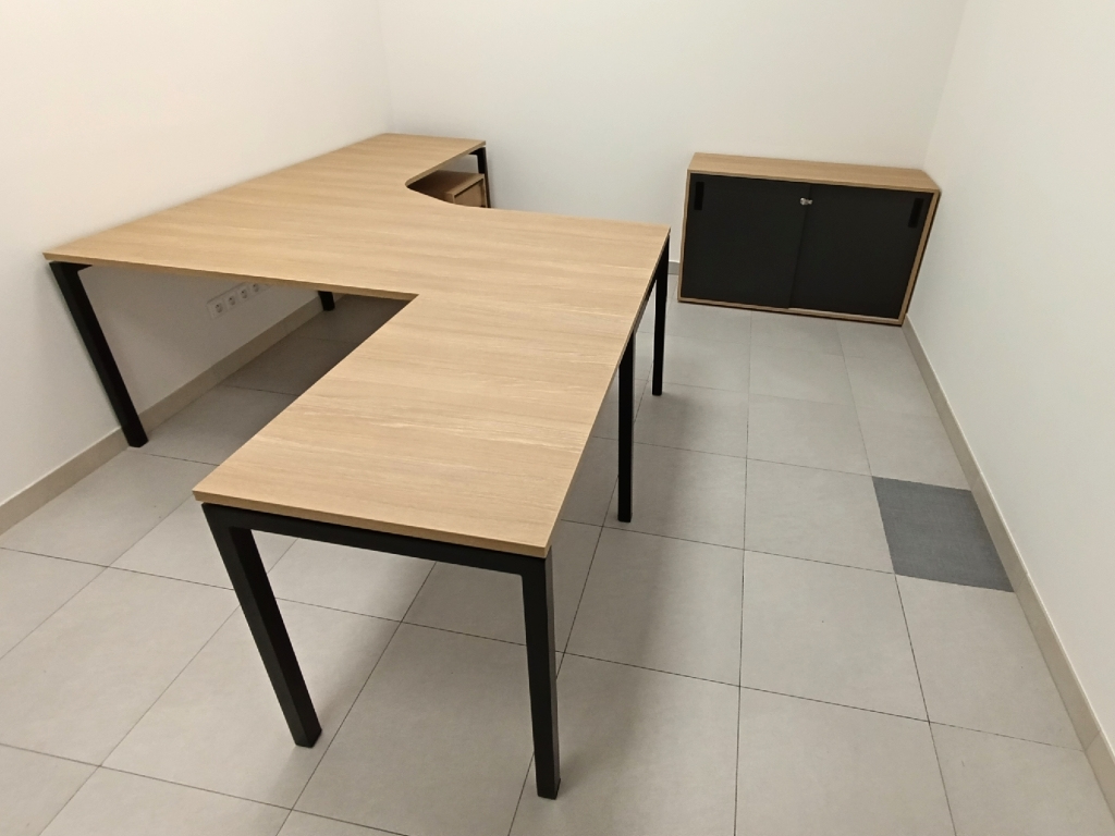 Zákazník nás požádal o návrh a vybavení zasedací místnosti designovým jednacím stolem a jednacími židlemi. Dále měl požadavek na vybavení malé kanceláře pracovním stolem, kontejnerem a skříňkou.